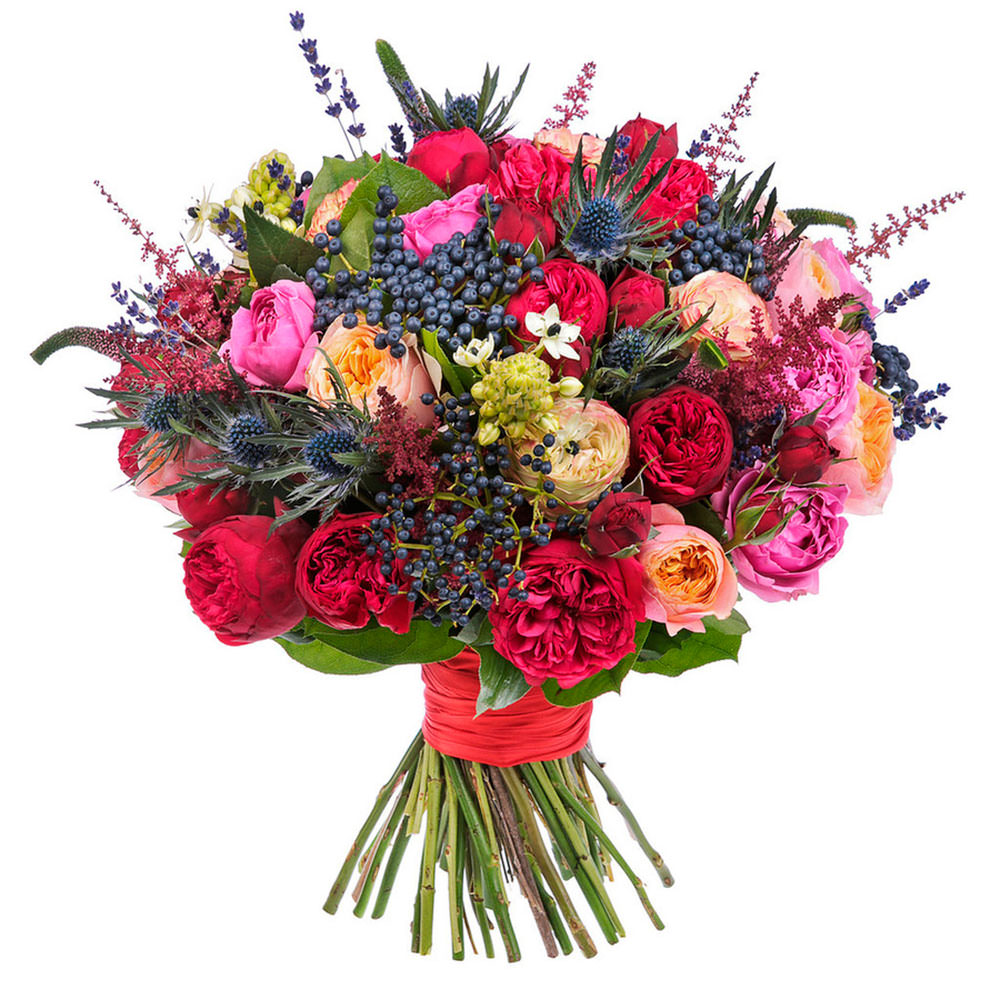 На фото представлен образец. Объем букета зависит от выбранного вами размера. Точное количество цветов и цветовую гамму вы можете уточнить у менеджера по телефону.